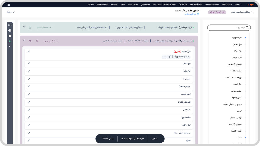 - فهرستنویسی و توصیف استاندارد منابع با بهرهگیری از RDA، BIBFRAME، CIDOC CRM و Schema.org