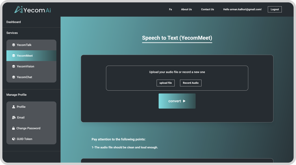 - دارای سرویسهای STT (تبدیل گفتار به نوشتار)، TTS (تبدیل متن به گفتار) و OCR (تبدیل تصویر به متن)